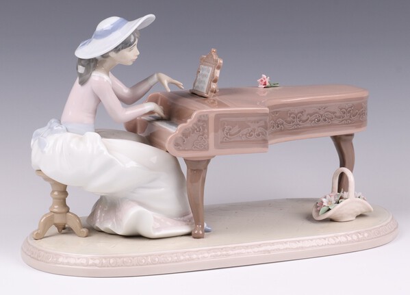 A Lladro figure of a girl seated at a grand piano "Spring Recital" 6452 29cm