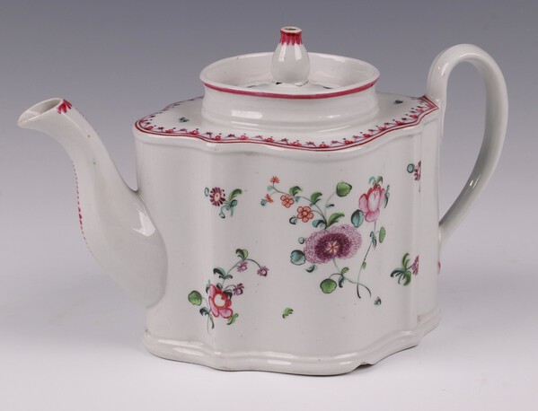 Lot 669 An early 19th Century New Hall teapot of shaped outline and floral decoration, the base numbered N298 14cm £30-50