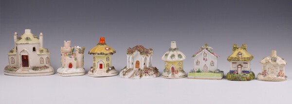 Eight, 19th Century Staffordshire pastel burners in the form of cottages (1 restored, 2 a/f)