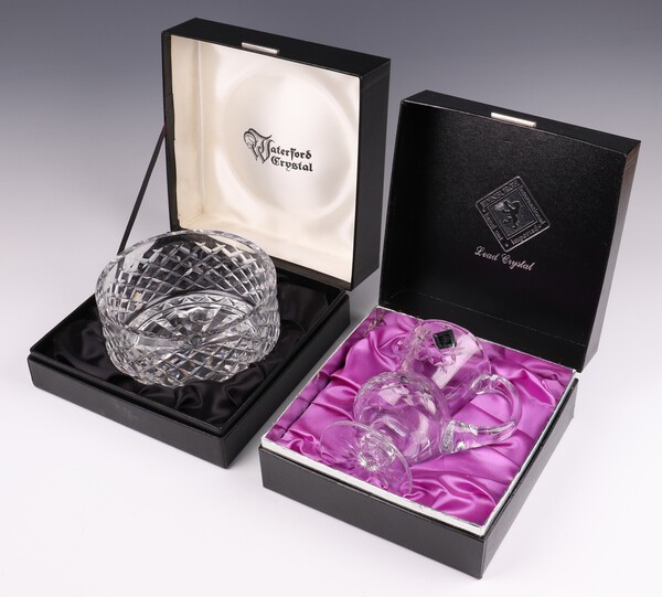Lot 693 A Waterford Crystal fruit bowl 18cm boxed and an Edinburgh Crystal thistle shaped jug 17cm boxed £40-60
