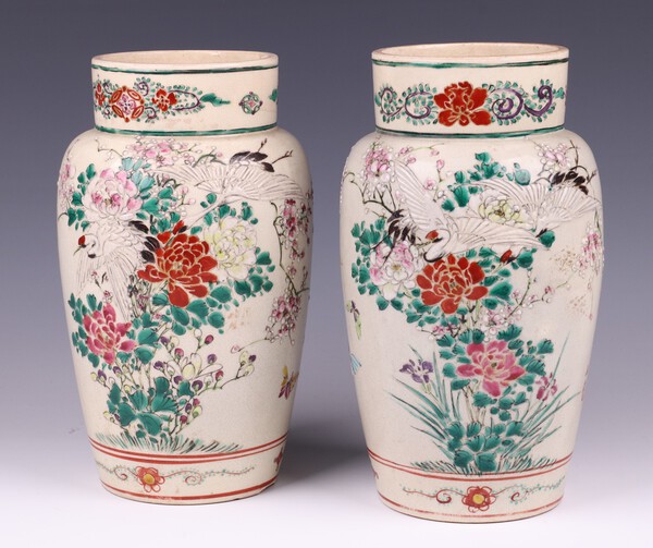 Lot 699 A pair of 19th Century Japanese Satsuma pottery vases decorated birds and flowers 23cm £40-60