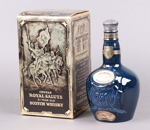 Lot 701 A 75cl blue glazed flagon of Chivas Brothers Ltd. Royal Salute 21 year old blended Scotch whisky, in original cardboard box £50-70