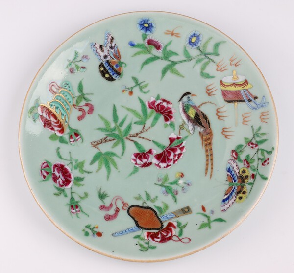 Lot 703 A 19th Century famille vert porcelain plate decorated birds, the base with seal mark 26cm £40-60