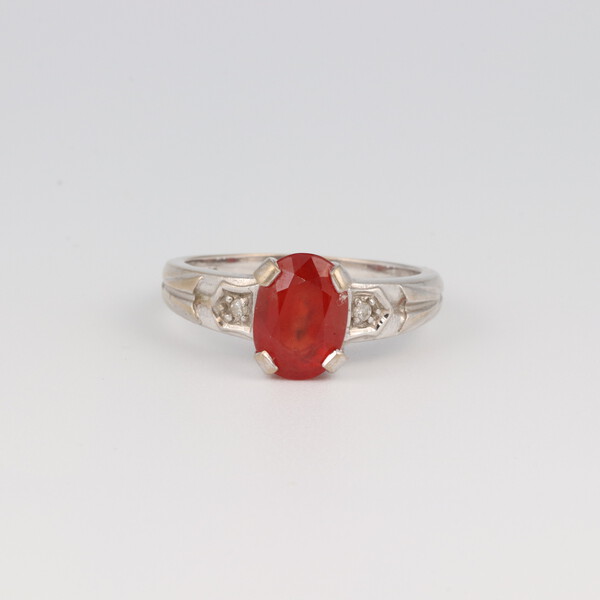 An 18ct white gold padparadscha sapphire, size N 1/2, 5 grams (with certificate)