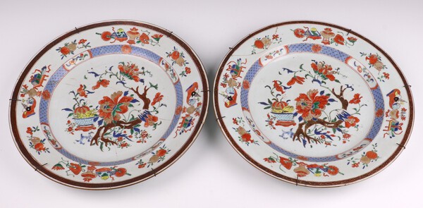 Lot 710 A pair of early 20th Century Japanese Imari porcelain chargers with floral decoration 35cm £40-60