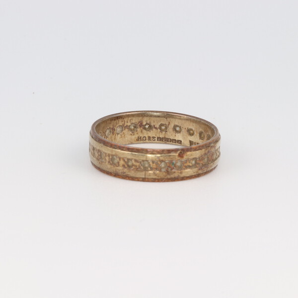 A 9ct yellow gold engraved wedding band, size O 1/2, 3.1 grams