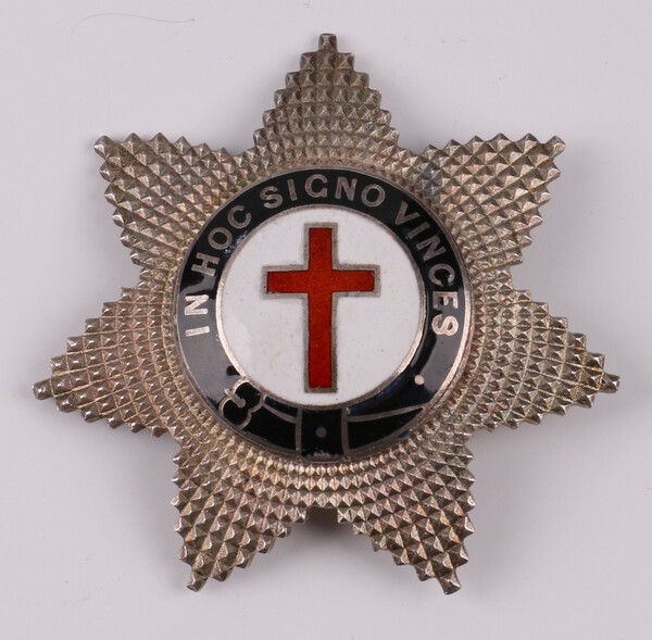 Lot 74 Masonic, a silver gilt and enamelled Knights Templar Knights breast star, London 1955 by Toye & Company, 5cm, 31.8 grams £40-60