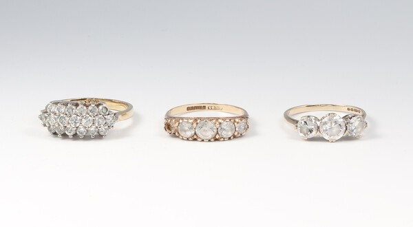 Lot 75 Two 9ct gold paste set rings sizes P 1/2 and N 1/2, gross weight 5 grams and a fashion dress ring £70-90