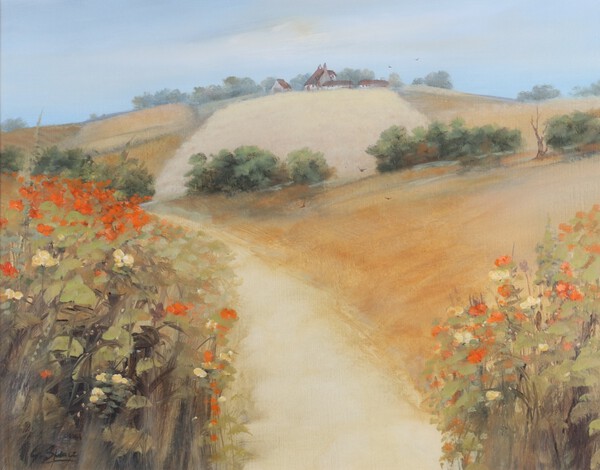 Lot 755 George Craig Spence (British, b.1931), "Hillside, Perth Scotland", oil on paper, signed recto, titled verso, 37cm x 46cm, within a gilt frame. £40-60