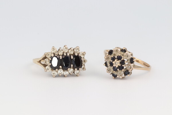 Two 9ct yellow gold gem set rings, sizes M 1/2 and O, 5 grams gross