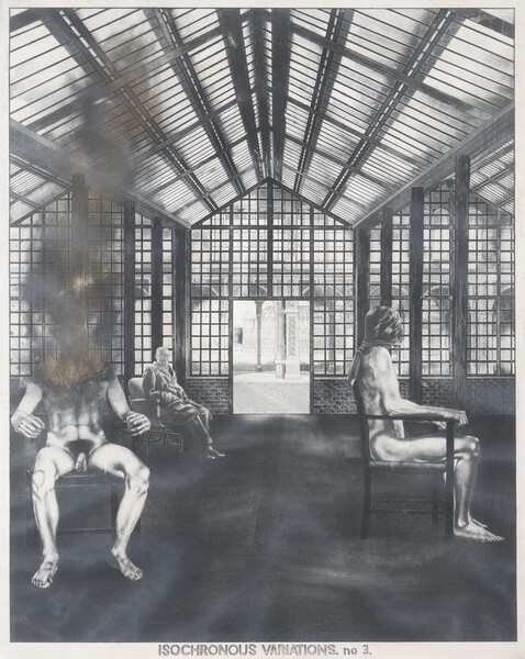**Terry Wilson (British, b.1948), "Isochronous Variations. no.3.", aquatint with mezzotint and hand-colouring on paper, signed and editioned 39/50 in pencil, 68cm x 54cm, within a black metal frame **Please note Artists Resale Rights may be payable upon this lot