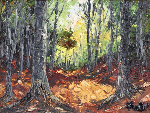 Lot 794 Continental School, Landscape with Trees, 20th century oil on board, indistinctly signed, 24cm x 33cm, within a gilt frame. £40-60