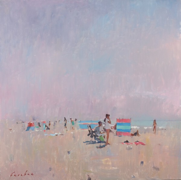 Lot 812 Alan Ferebee, Summer Beach Scene with Figures, late 20th/early 21st century oil on canvas, signed, 76cm x 76cm. £80-120
