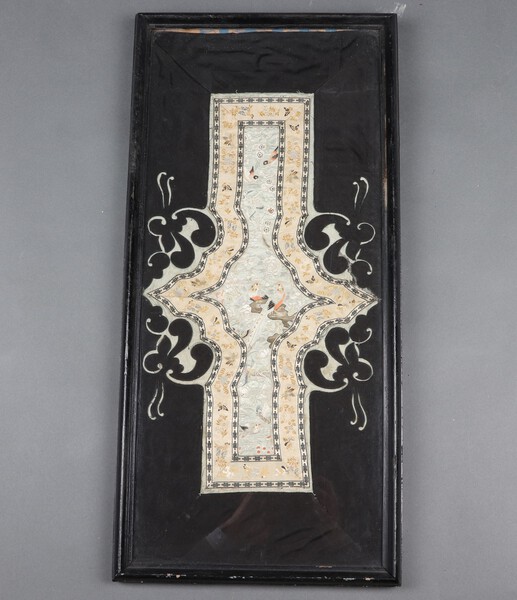 A 19th Century Chinese embroidered panel decorated birds 65cm x 29cm