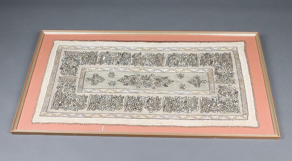 An Eastern bullion embroidered panel decorated flowers 94cm x 50cm