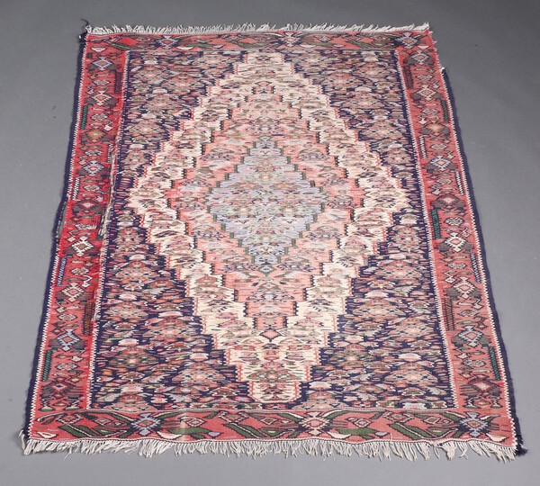 A white, blue and pink ground Kilim rug 150cm x 117cm