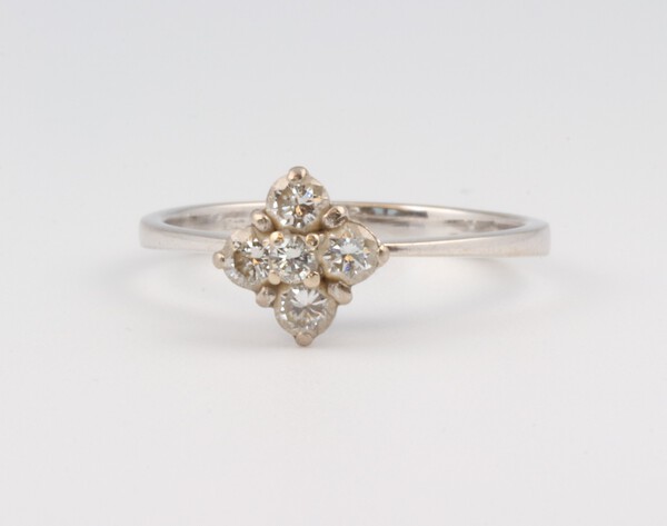 An 18ct white gold diamond set cluster ring, size Q 1/2, 2.8 grams