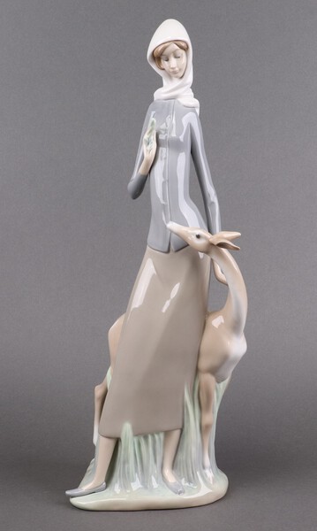 A Lladro porcelain figure group, Diana and Fawn 4514, 46cm