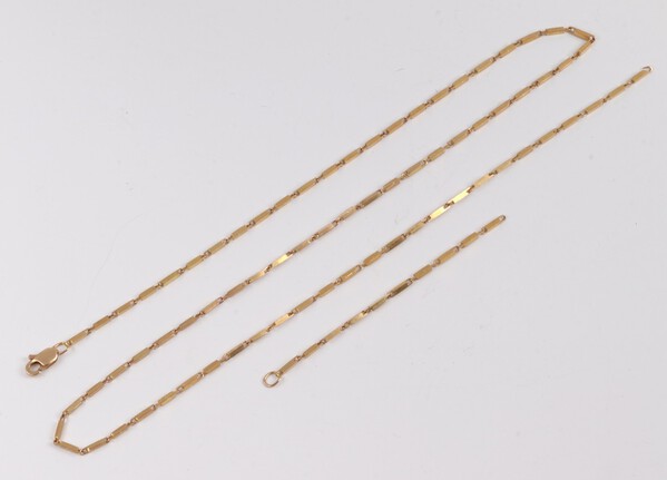 A yellow gold testing as 9ct chain, 60cm (chain is damaged), 8.2 grams