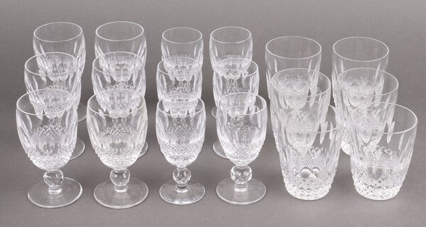 Lot 903 Eighteen Waterford Colleen pattern glasses including 6 small wine glasses, 6 liqueur/sherry glasses and 6 small tumblers £80-120