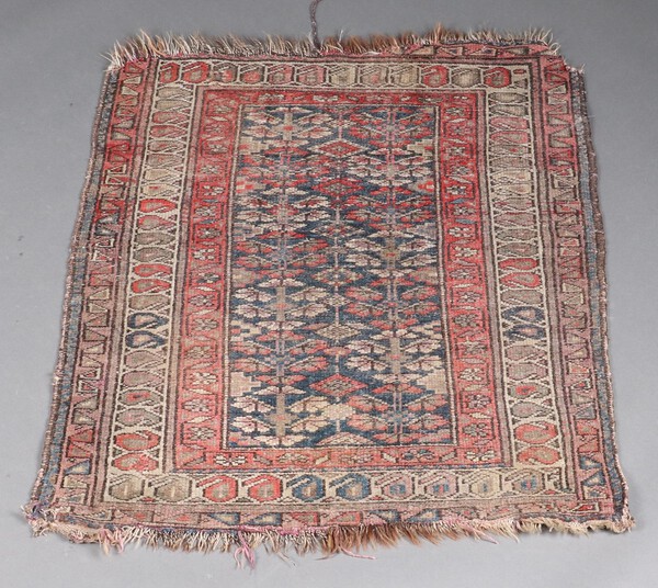 Lot 905 A blue and green ground Caucasian style rug with central floral medallion within a 3 row border 118cm x 95cm (in wear) £50-75