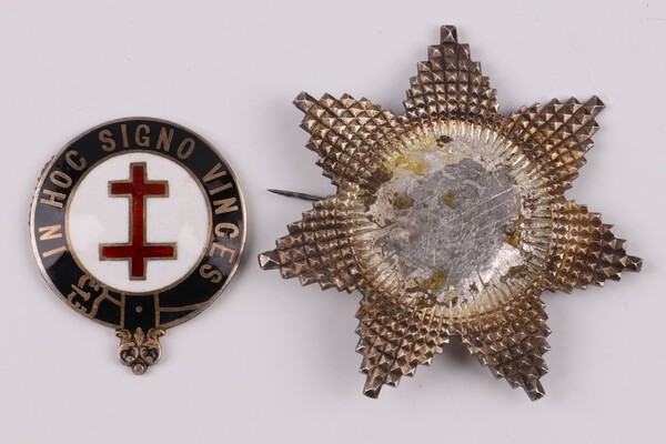 Lot 91 Masonic, a Victorian silver gilt and enamelled Knights Templar Preceptor breast star, Birmingham 1868, makers mark J.K, 6cm, 34.8 grams £60-80