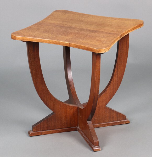 Lot 911 An Art Deco shaped oak utility occasional table on X framed supports, the base marked E210 48cm h x 44cm w x 44cm d £40-60