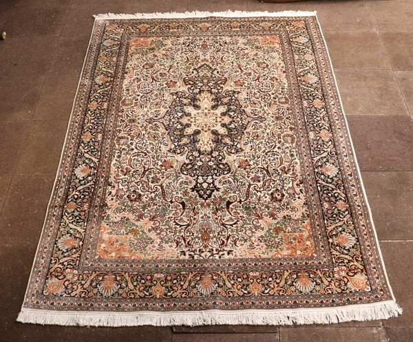 Lot 916 A white and blue ground North Persian floral patterned carpet with central medallion and multi-row border 270cm x 182cm £80-120