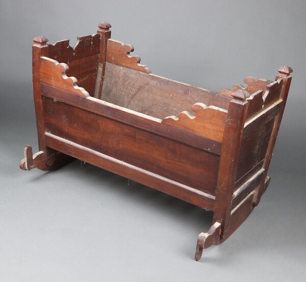 Lot 928 An 18th/19th Century fruitwood rocking cradle, the head carved "Thou shalt lie down and thy sleep shall be sweet" 62cm h x 91cm w x 65cm d £40-50