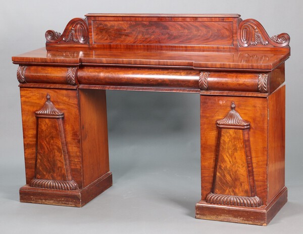 Lot 940 A William IV inverted breakfront mahogany pedestal sideboard fitted 1 long and 2 short drawers, 1 pedestal fitted a cellarette drawer, the other a drawer and 2 trays 116cm h x 167cm w x 48cm d £80-120