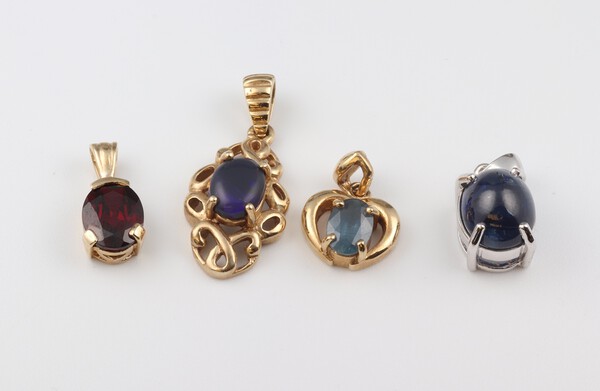 Lot 95 Three 9ct gold gem set pendants, yellow gold testing as 9ct yellow gold gem set pendant and 1 other pendant (4) £50-75