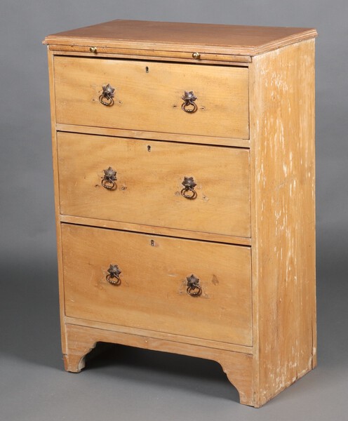 Lot 950 A 19th Century pine chest with brushing slide above 3 long drawers with with replacement drop handles, raised on bracket feet 99cm h x 66cm w x 38cm d £60-80