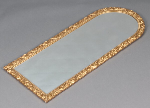Lot 966 A 1950's arched bevelled plate mirror contained in a gilt painted plaster frame 113cm x 46cm £40-60