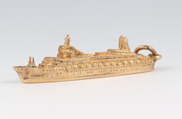 A 9ct gold Canberra cruise ship charm, 3.5cm, 3.4g