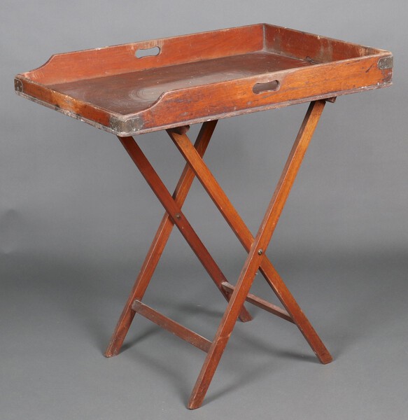 A rectangular mahogany butler's tray and stand 90cm h x 85cm w x 60cm d