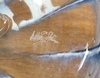 • A circular opaque Art Glass bowl with blue swirl decoration 9cm x 16cm, signature mark to base