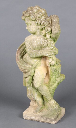 A child's wooden slatted and metal framed garden bench the back panel decorated animals 52cm h x 84cm w x 33cm d