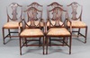 | 59 | A set of 6 20th Century Hepplewhite style shield shaped camel back dining chairs with upholstered drop in seats - 2 carvers 95cm h x 52cm w x 43cm d, 4 standard, raised on square tapered supports | 30-40 |