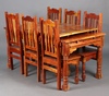 | 60 | A rectangular hardwood dining suite, the table raised on turned supports with two side extensions 75h x 167long x 91w together with six dining chairs | 20-30 |