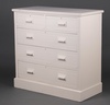 | 66 | A white painted hardwood chest of 2 short and 3 long drawers with shaped handles, raised on a platform base 103cm h x 104cm w x 50cm d | 30-50 |