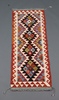 | 101 | A black, white and orange ground Chobi Kilim runner with 4 stylised medallions to the centre 148cm x 49cm | 30-40 |
