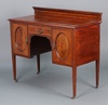 | 81 | An Edwardian inlaid mahogany washstand/dressing table with raised back, the base fitted a drawer flanked by cupboards, raised on square tapered supports 91h x 107w x 50d | 30-40 |