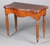 | 84 | A Victorian walnut card table, raised on turned and reeded supports with caps and ceramics casters (1 caster missing) 75h x 90w x 46d (old treated worm to the back board, patch to the top) | 20-30 |