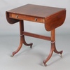 | 90 | A 1920's Georgian style sofa table fitted a drawer, raised on standard end supports, brass caps and casters 70h x 68w x 51d (leg a/f, water and contact marks in places) | 20-30 |