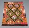 | 125 | A green, black and orange ground Maimana Kilim rug with all over diamond design 185cm x 125cm | 60-80 |