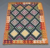 | 121 | A green and black ground Maimana Kilim rug with diamond design to the centre 141cm x 96cm | 40-50 |
