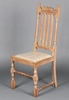 | 132 | A bleached oak stick and rail back dining chair with upholstered drop in seat (missing a stretcher) | 20-30 |