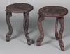 | 142 | A circular carved hardwood occasional table on cobra supports 50cm h x 38cm diam. and a similar table the centre carved flower head 51cm h x 38cm | 30-50 |