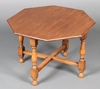 | 186 | An oak octagonal occasional table raised on turned supports with X framed stretcher 40cm h x 61cm w x 61cm d | 30-40 |
