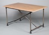 | 195 | An oak and metal framed rectangular table raised on column supports 79cm h x 149cm l x 83cm w | 40-60 |